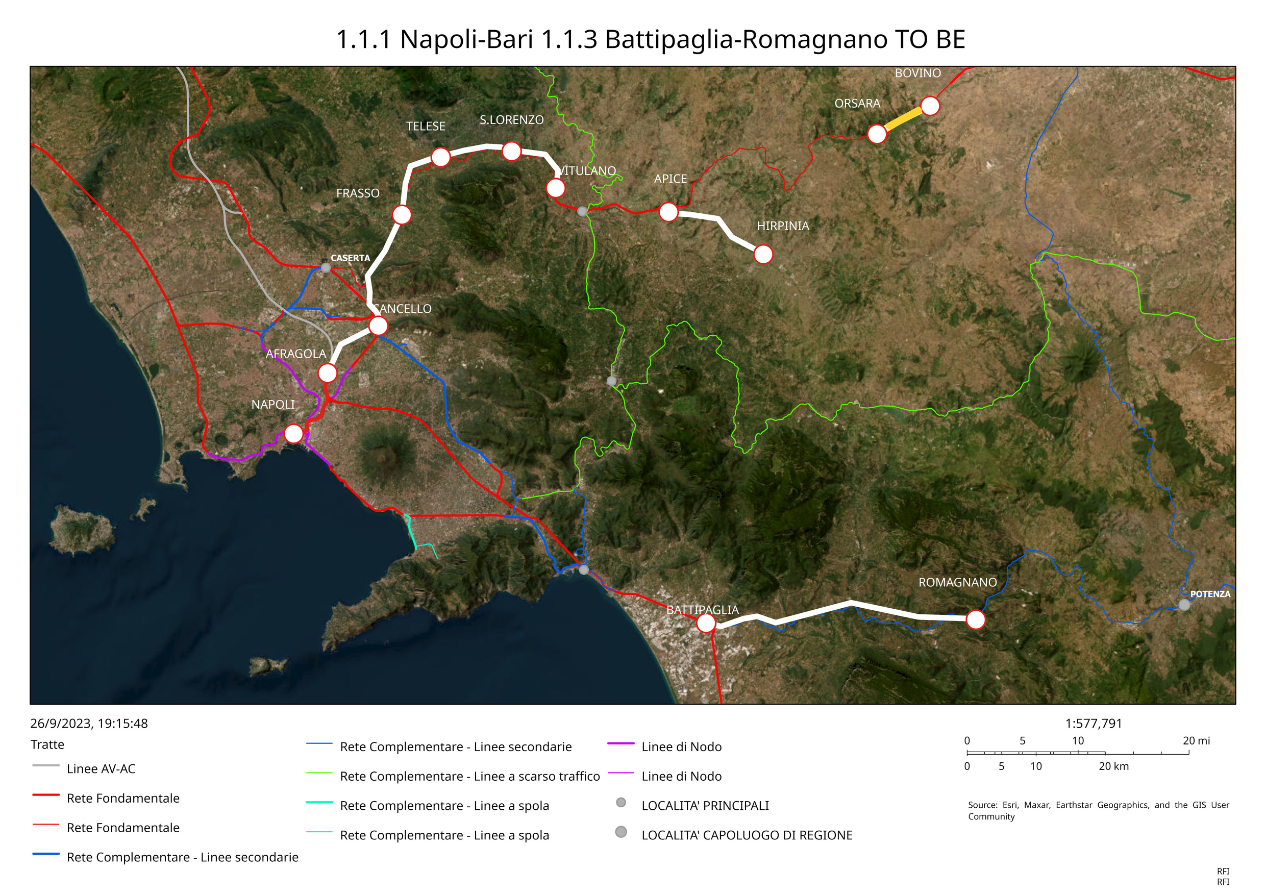 Tra questi, in particolare, vi è l’investimento Collegamenti ferroviari ad Alta Velocità con il Mezzogiorno per passeggeri e merci (Napoli – Bari), che ha un valore originario complessivo di circa 1.400 milioni di euro di risorse PNRR. A seguito delle proposte di rimodulazione la tratta Orsara-Bovino potrebbe essere dirottata su fondi nazionali, essendo già inclusa nel Contratto di Programma tra MIT e RFI.